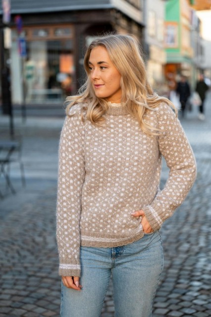 Pakke med garn og oppskrift til Klassisk Islender fra House of Yarn. Genseren er strikket i ullgarnet Older fra Dale Garn. Den kommer i størrelse XXS-XXXL. Velg størrelse og bunnfarge.