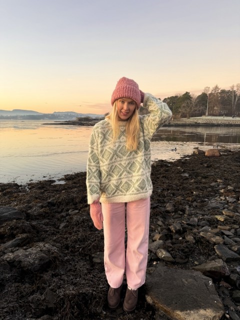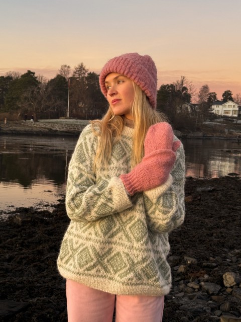Strikkepakke til stilig Cortina genser strikket i det myke garnet Faerytale fra House of Yarn. Genseren er designet av influencer Ingrid Raadim i samarbeid med House of Yarn. Mønstret genser med isydde ermer. Genseren kommer i størrelse XS-XL. Velg størrelse og mønsterfarge.
