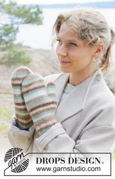 Strikkepakke til nydelig sett med lue og votter strikket i DROPS Fiesta og DROPS Kid-Silk. Kommer i størrelse S/M-L/XL.