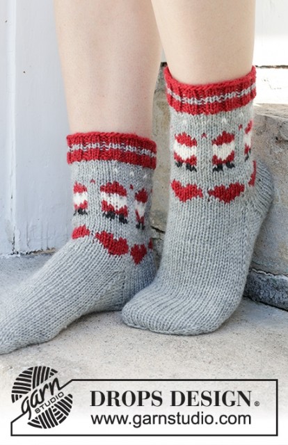 Pakke med garn og oppskrift til de søte julesokkene Santa Time Socks by DROPS Design. Juleskokene er strikket i DROPS Karisma og kommer i størrelse 35-43. Velg størrelse.