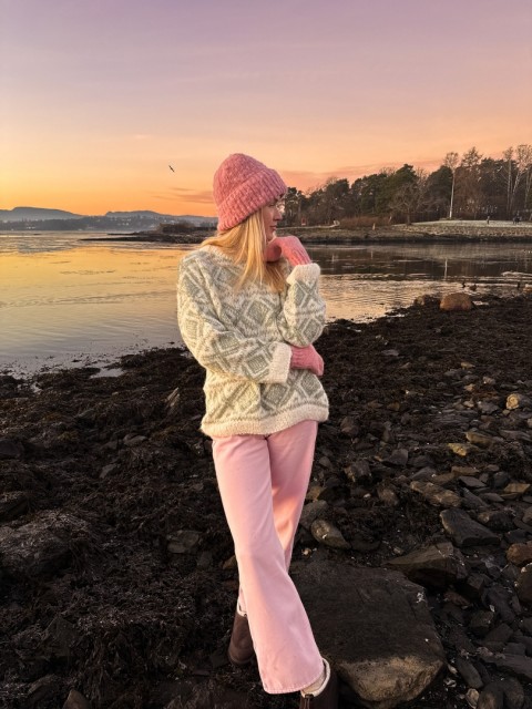 Strikkepakke til stilig Cortina genser strikket i det myke garnet Faerytale fra House of Yarn. Genseren er designet av influencer Ingrid Raadim i samarbeid med House of Yarn. Mønstret genser med isydde ermer. Genseren kommer i størrelse XS-XL. Velg størrelse og mønsterfarge.