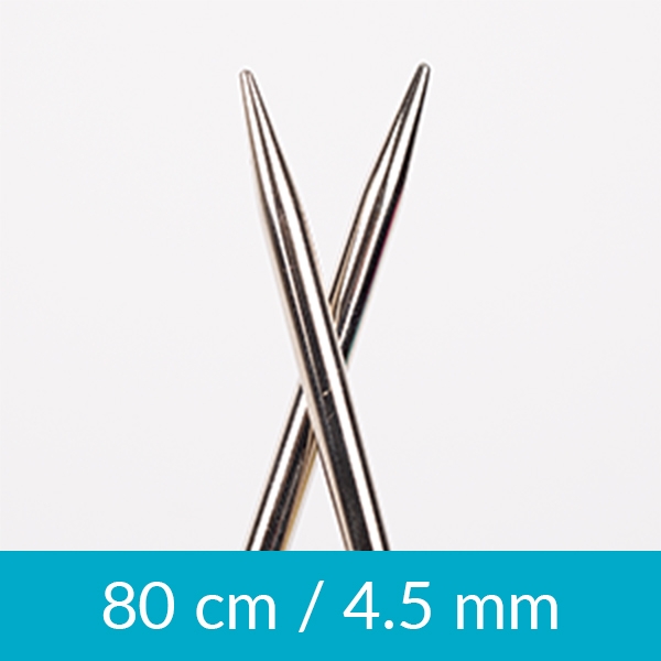 DROPS Pro Classic rundpinne 4,5 mm, 80 cm lengde. Pinnen er laget av hul messing dekket med nikkel.