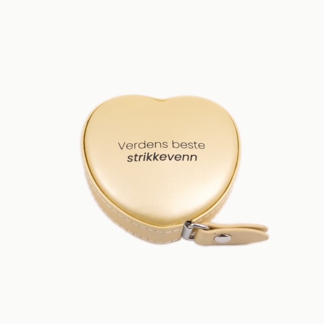 Målebånd Gull - Hjerte - Verdens beste strikkevenn Målebånd Gull - Hjerte - Verdens beste strikkevenn Praktisk rullemålebånd med teksten Verdens beste strikkevenn. Pris149,00 NOK inkl. mva. På lager Antall Kjøp Ønskeliste Del dette Produktinfo Praktisk gullfarget målebånd med teksten Verdens beste strikkevenn. Viser cm på den ene siden og inches på den andre siden. Lengde: 150 cm / 60 inches.