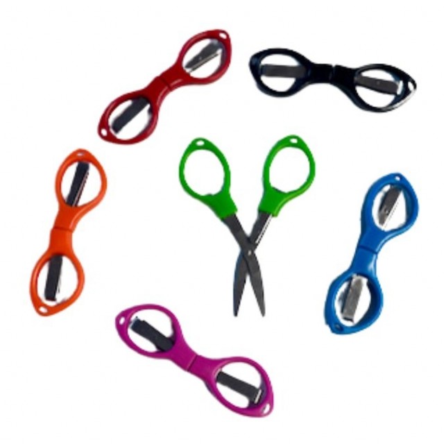 Praktisk rosa sammenleggbar saks som ikke henger seg opp i strikketøyet når den ligger i veska. Kommer i assorterte farger. Pris per stk.